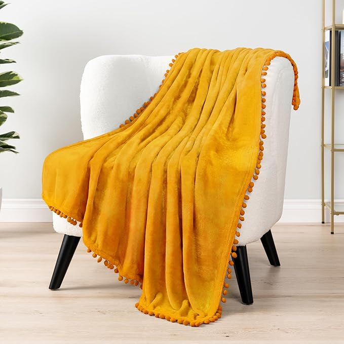 The ultimate cuddle companion. This fleece throw is soft, lightweight, and trimmed with playful pom poms. Perfect for movie nights, naps, or adding a cozy touch to your bed or sofa.