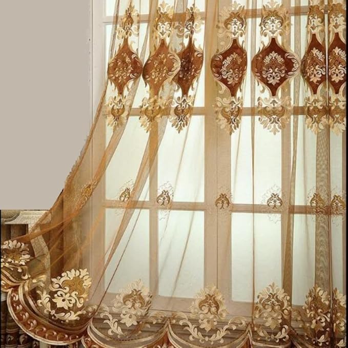 These sheer, embroidered curtains filter light like moonbeams — creating a warm, romantic atmosphere that feels both vintage and refined.